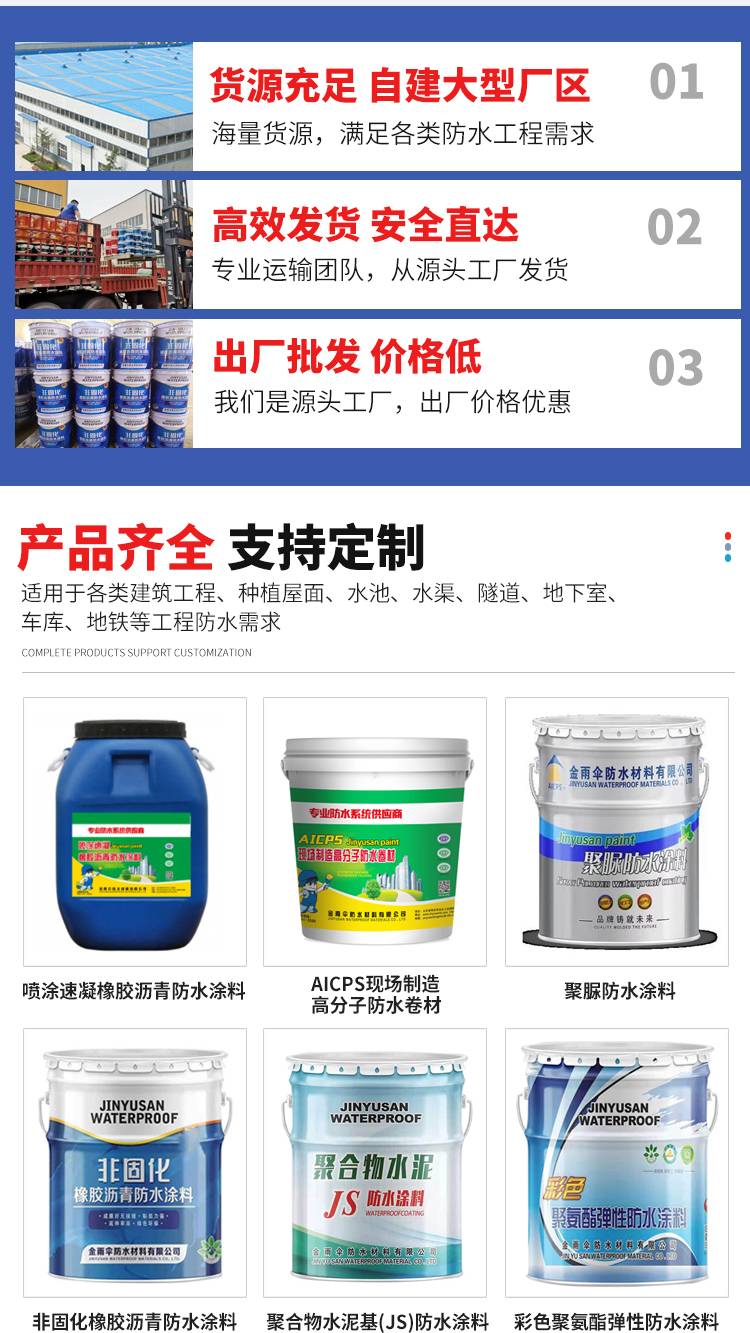 金雨伞 JS聚合物防水涂料 隧道大坝专用防水材料 按需定制